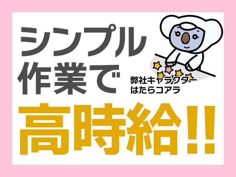 仕事内容 金属部品の軽作業のスタッフです! 資格・経験不問のため、 未経験の方も安心してスタートできます。 お仕事ブランクが長い方も歓迎! < 具体的には > 金属部品の ・検品 ・梱包 ・組立 ・バリ取り などの補助作業です。 部品は小型なので重量物はありません。 << 月収18万円以上も可 >> しっかり稼ぎたい方に◎ 月収例:月収18万2000円 ※時給1300円×1日7h×月20日 ◆――――――――――◆ 未経験さんでも安心◎ ◆――――――――――◆ 資格や経験は問いません。 「久しぶりの仕事で不安…」という方も、 丁寧にサポートしますので ご安心ください◎ コツコツ・モクモク作業や、 細かい作業が得意な方にぴったりです♪ 経験者の方も大歓迎! ◆――――――◆ お休み充実! ◆――――――◆ 残業なし!年間休日125日◎ 完全週休2日制で土日祝休み☆ 休日はしっかりリフレッシュ したい方にもおすすめです♪