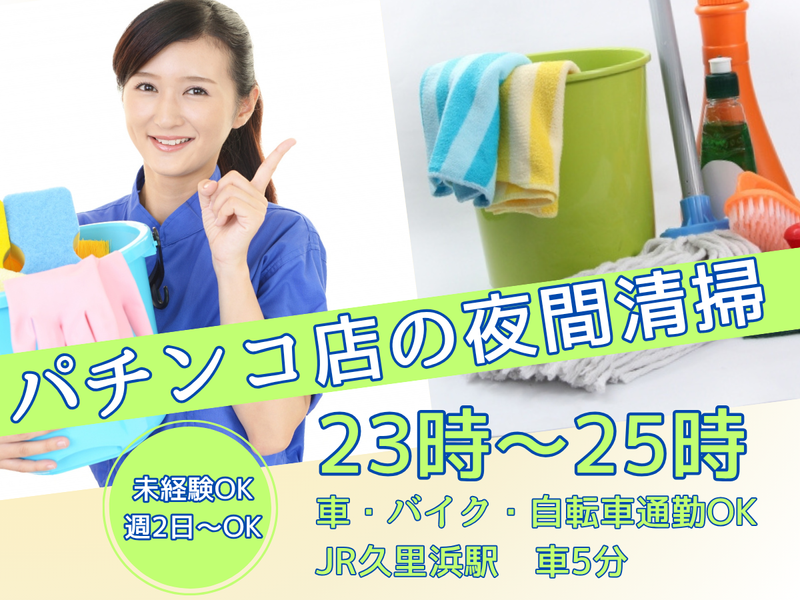 仕事内容 ✨接客なしの清掃スタッフ募集✨ 深夜の2時間勤務!時給1540円~! ༶ ༶ ༶ ༶ ༶ ༶ ༶ ༶ ༶ ༶ ༶ ༶ ༶ ༶ ༶ ༶ ༶ ༶ ⭐未経験でも安心スタート❗⭐  ̄ ̄ ̄ ̄ ̄ ̄ ̄ ̄ ̄ ̄ ̄ ̄ ̄ ̄ ̄ ̄ ⭐接客なしの黙々作業❗⭐  ̄ ̄ ̄ ̄ ̄ ̄ ̄ ̄ ̄ ̄ ̄ ̄ ̄ ̄ ̄ ̄ ⭐短時間&週1日〜勤務OK❗⭐  ̄ ̄ ̄ ̄ ̄ ̄ ̄ ̄ ̄ ̄ ̄ ̄ ̄ ̄ ̄ ̄ ⭐終電もしっかり考慮❗⭐  ̄ ̄ ̄ ̄ ̄ ̄ ̄ ̄ ̄ ̄ ̄ ̄ ̄ ̄ ̄ ̄ ༶ ༶ ༶ ༶ ༶ ༶ ༶ ༶ ༶ ༶ ༶ ༶ ༶ ༶ ༶ ༶ ༶ ༶ 【仕事内容】 パチンコ店内の清掃をお願い致します。 ■遊技台や床の拭き掃除 ■灰皿やゴミ箱の回収 ■トイレ清掃・備品補充 などをお任せします! ⏩他店舗での勤務もOK 衣笠店:横須賀市衣笠栄町2‐4 「衣笠駅」30秒 久里浜店:横須賀市久里浜1丁目1-6 「久里浜駅」1分 ⏩パチンコ店閉店後の清掃✨ コツコツ・モクモク作業◎ 掃除に集中できる環境です✊ ⏩清掃未経験でも安心☘ 道具の使い方から丁寧に 教えるので未経験も安心◎ ⏩1日2時間で私生活と両立☕ 学業重視や家事・子育て、 Wワークなどと無理なく両立! プライベートも充実しながら 深夜時給で賢く稼げます♪ ⏩ブランクある方も歓迎❗❗ 年齢・経験・学歴不問◎ 異業種からの転職も応援します。 ༶ ༶ ༶ ༶ ༶ ༶ ༶ ༶ ༶ ༶ ༶ ༶ ༶ ༶ ༶ ༶ ༶ ༶