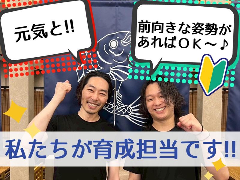 求めている人材 髪型・髪色自由、ひげ・タトゥーOKなど自由度が高いです! 自分らしくオシャレも楽しみながら働けますよ♪ 個性を尊重し、スタッフの自由な発想や自己表現を応援します✨ *未経験OK *20代前半が中心に活躍中 *社会人デビュー歓迎 *フリーターから正社員を目指したい方 *飲食が好き・料理を覚えたい方 *人間関係がいい職場で働きたい方 ※経験・資格は一切問いません。 【入社後学べるスキル!】 ・料理の基本である包丁の扱いから、天ぷらや海鮮の調理技術まで一から学べます。 ・メニュー開発や盛り付けなど、創意工夫を活かせる仕事です。 ・ゆくゆくは新人育成やシフト管理など、マネジメントスキルも磨けます。 ・調理技術だけでなく、チームをまとめる力やリーダーシップも身につく環境です。
