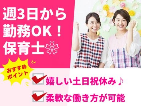 <★保育士資格者必須!>土日祝休み♪週3日勤務からOK!