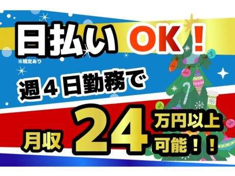 時給1,688円 給与 時給 1688円 ■給与について ・時給1688円 ※22時~翌5時以外は時給1350円 \高時給で稼げる!/ 残業なしでもしっかり稼げるのがポイント! 交通費:交通費支給 交通費月2万円まで支給(規定支給) 【給与例】 給与例 *\夜勤でしっかり稼げます/* ■日収1万5613円 …時給1350円×3.75時間+時給1688円×6.25時間 ■週4日(月16日)勤務で月収24万~25万円も目指せる! …1万5613円×16日=24万9808円+交通費支給◎