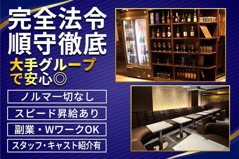 職場環境 【チームワークの良さが何よりの魅力!】 年齢や役職に関係なく、 スタッフ全員が互いにリスペクトし合いながら、 より良い店舗づくりに全力で取り組んでいます。 法令順守を徹底しているグループ企業なので、 ナイトワーク特有のグレーな面も一切ありません✨