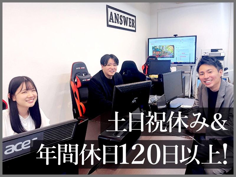 職場環境 社員想いな勤務スタイル◎ 『ANSWER』の一員として、確立された基盤のもと安心して働ける環境です。 「バイトル」ブランドで有名な会社なので認知度が高く、将来的にも安定した会社で長く働き続けたい方に最適です。