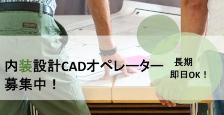 仕事内容 \BIM・CADオペレーター派遣に特化した派遣会社/ サポート体制抜群/派遣初心者でも安心してお仕事スタート! 正社員前提の紹介予定派遣 【内装施工会社でCADオペレーターのお仕事】 <具体的には・・・> 使用CAD:AutoCAD 路面店舗の内装工事・リニューアル工事に関する図面を作図・修正するお仕事です。 ラフ図や赤チェック図をもとに担当者の指示に沿って図面の修正をお願いします。 事務:Word・Excelを使用して関連資料の作成をお願いします。 徐々に新規図面の作成に挑戦するなどスキルアップを目指せます ――――――――――――――――― <実際に働くスタッフの声> 元々正社員でCADオペレーターをしていたのですが、残業が多くて疲弊してしまい転職を考えていました。 そんな時、友人がアットキャドでCADオペをしている話を聞いたんです。 「派遣」という働き方には少し不安がありましたが、働きやすそうだな、と感じて思い切って転職しました。 実際、サポート体制が整っているので安心して働けますし、キャリアアップ研修もあって技術面も磨いていけます。 また、契約更新時にもっとスキルアップしたい時には大手を含めた新しい職場に挑戦できる可能性もあります! 派遣という働き方が自分にはぴったりだったので、あの時思い切って決断して本当に良かったと思っています! (30代/女性スタッフ) ――――――――――――――――― \充実した無料の研修制度◎/ 建築基礎・CAD製図法、CAD作図などの 基礎的な知識装着/実践から、 建築・土木・設備など 各企業の要望に合わせた研修もあり! 「ブランクがあって自信がない」 そんな方も安心してご応募くださいね! \アットキャドで働くメリット/ ・アットキャドは建築業界特化20年!累計取引社数3,500社! ・業界最大級の求人を保有しているから 在宅や綺麗なオフィス、残業少なめや駅チカ案件などあなたの“ワガママ”が叶うんです☆ お仕事のポイント 従業員数 1129名 平均年齢 37歳 初心者向け ★★☆☆☆ 経験者向け 【転籍後の条件(正社員登用)】 年収:350~400万円 年1回昇給あり 年2回賞与あり 全額交通費支給 各手当有(資格手当・住宅手当・家族手当 等) 【通勤もランチもベンチな駅チカオフィス】 服装 オフィスカジュアル 屋内の受動喫煙対策あり(禁煙) 【オンラインのWeb・電話での登録面談もOK】 各社テレワーク、モバイルワーク(在宅)でのお仕事や今話題のBIMのお仕事が急増中 BIM対応ソフトの3DCAD基本研修講座もやってます 詳しくはアットキャドへお問い合わせください。 \\ アットキャドで働く3つのメリット // 【1】取引実績社数、3500社以上! 当社は、CAD・BIMオペレーターに特化した、専門派遣・紹介事業を中心として事業を展開しています。 各種SNSにてCMも絶賛配信中! CADオペレーターとして活躍したい方には必見の派遣サービスです! 【2】技術面でのお困りごとも解決 メッセージアプリを使用したヘルプデスク『@CAD駆け込み寺』では、気軽に技術面に関する質問が可能! 安心してお仕事に取り組めるうえに、スキルも高められます。 【3】お仕事の悩みも徹底サポート 担当者が月1回就業先を訪問し、お困りごとがないかヒアリングを行います! 解決までしっかりとサポートいたしますので、小さなことでもお気軽にご相談くださいね。 \こんなスキルをお持ちの方は活かせます/ AutoCAD HO-CAD Jw_cad 図脳RAPID CRAFT-CAD Vectorworks V-nas Revit ArchiCAD Navisworks 製品製図 図面複写 図面修正 図面管理 \こんな方にもピッタリ!/ ・土日祝休みの仕事や、在宅勤務の仕事を探している方 ・アルバイト、パート、正社員でcadオペレーターの仕事をしていた方 「設計職でCADを使っていた」など、CAD業界が初めての方も歓迎! 実務経験がなくても、CADスクールを卒業した方であれば是非ご応募ください?