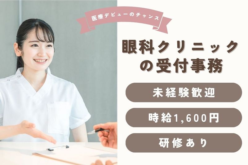 仕事の内容 ✨地域密着×最先端!眼科クリニックの受付事務スタッフ✨\受付業務を中心に、医療現場でのスキルを広げられる環境です/日本最大規模の民間眼科専門病院で副院長を務めた院長が運営する、地域密着型の眼科クリニックにて、受付事務スタッフを募集します。【主な業務内容】・来院患者さまの受付対応・会計業務(現金・クレジット・QR決済対応)・診察時の介助業務・カルテの代行入力・オペ患者さまの誘導・案内【将来的にお願いする可能性がある業務】・レセプト入力や請求処理業務・視力検査や眼圧検査などの補助業務未経験の方でも先輩スタッフが丁寧に指導する体制が整っています◎最先端の眼科医療に触れながら、着実にスキルを身につけることができます。小規模ならではの風通しの良さと、大病院レベルの専門性を併せ持つ環境で、「医療事務+α」のキャリアを築きたい方にはぴったりです。【魅力ポイント】✅地域に根差しつつ、最先端の医療を提供する眼科クリニック✅受付を起点に、将来的なキャリアの幅を広げられる職場✅人間関係良好&丁寧な教育体制で、未経験からのスタートも安心!まずは「少し興味がある」という段階でもOK!お気軽にご応募・ご相談ください。あなたの医療事務デビューを応援します✨ お問い合わせの際には下記【お仕事No】をお伝えください。 お仕事No:1755707