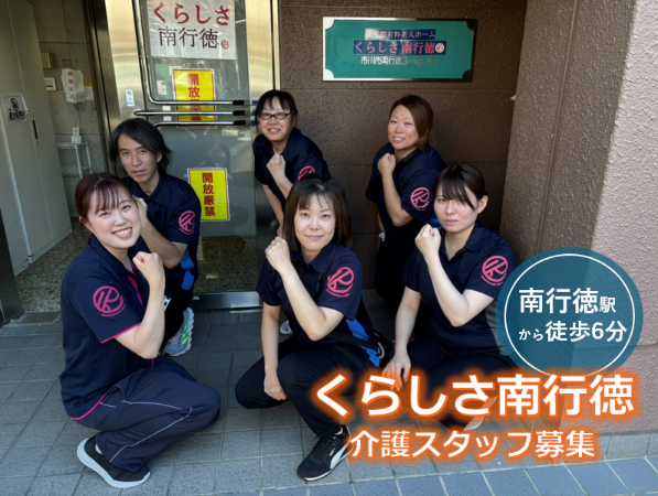 PRコメント ⭐️元気な介護で働く魅力⭐️ ✅️資格取得可◎費用は会社負担! ✅️身だしなみなどにかかる費用20,000円/年サポート! ✅️有休消化率 86%! ✅️賞与年2回・昇給年1回☆ ✅️週休3日制を導入! スタッフみんなが働きやすいようにどんどん改革も行なっています! ⭐️事業所情報⭐️ 南行徳駅から徒歩6分の好立地! 現在30名のスタッフが在籍★ 男性4名:女性26名 ※2024年12月時点 20代~60代の幅広い年齢のスタッフが活躍中♪ ⭐️管理者より⭐️ みんなで施設を盛り立ててくれるメンバー募集中です!! まずはお気軽にご応募ください✨✨ 【仕事内容】 仕事内容は、高齢者の方や認知症のある方へ、お着換え、食事、お風呂、排泄、など身体介助や声掛けなどの介護業務全般。 最初は施設長の補佐をしながら、入居の方々や新しいスタッフとともに少しずつ経験を重ねて頂ければと思います。 ■スタッフの1日の流れ 7:00~ 朝食準備、配膳 9:00~ 朝食の食器など片付け、お部屋の掃除、 排泄介助、健康チェック、夜勤スタッフからの申し送りなど 10:00~ 必要に応じた排泄介助や、あらかじめ決められているスケジュールに沿った入浴介助、各自の介護記録の記載、洗濯など 11:30~ 入居者の昼食準備や必要に応じた食事介助 13:30~ 排泄介助、入浴介助、 休憩時間 16:00~ 夜勤者への引き継ぎ、介護記録の記載、夕食準備 17:00~ 夕食開始 ■入社後、仕事内容が変更となる予定はございません。
