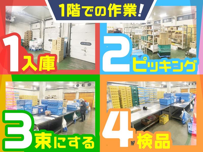 仕事内容 \未経験者歓迎!簡単作業のお仕事♪/ 新鮮な野菜や果物を発注書通りに ・ピッキング ・仕分け ・箱詰め ・在庫管理等 をするお仕事です。 未経験でも丁寧に1から教えていきますので ご安心下さい! ――――――――――――――――――― ◤ 約300品目の青果を取り扱い ◢ ――――――――――――――――――― 市場から仕入れた野菜や果物を 倉庫内で仕分け・梱包し、 飲食店や薬局、スーパーなどに出荷しています。 ――――――――――――――――――― ◤ 倉庫内は常に20℃前後 ◢ ――――――――――――――――――― 空調設備は整っているので暑い夏も寒い冬も 快適に作業を進めることができます。 ――――――――――――――――――― ◤ 更衣室&休憩室 ◢ ――――――――――――――――――― 男女別の更衣室には鍵付きのロッカーを完備! また、休憩室には電子レンジや給湯器もあり、ゆっくりと休むことができます。 「休憩中に一度家に帰って、家事を片付けてきます」なんてスタッフもいますよ♪ ――――――――――――――――――― ◤ まずは見学だけでもOK ◢ ――――――――――――――――――― 「気になっているけどなぁ…」と 応募を迷っている場合は見学だけでもOK 気になる事があればなんでも聞いてください!
