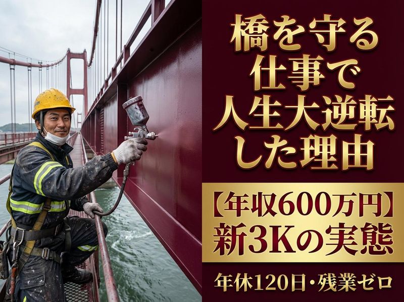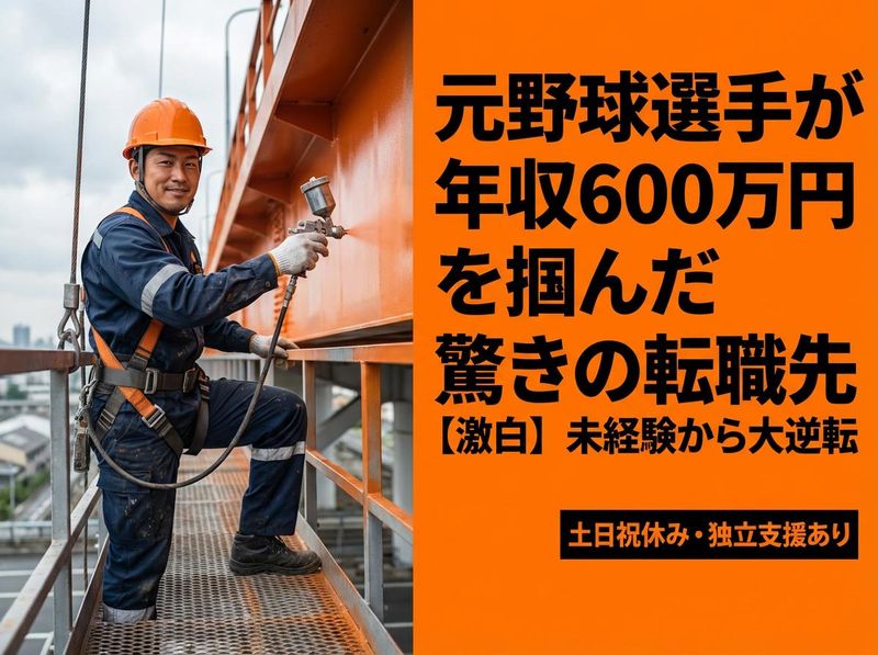 仕事内容 まるで“慰謝料”に頼らない働き方を、 今こそ実現しませんか? 「給料は慰謝料みたいなもの」 ――あなたは、こんな言葉を 耳にしたことはありませんか? 世の中の企業の多くが、 まるで“ごめんね、 こんなツラい仕事を 押し付けちゃって”と 謝罪するかのように給料を払っている…。 そんな構造、もう終わりにしませんか? こんにちは、私は株式会社 金村塗装 を経営している代表の金村です。 私たちは、“人生をもっと自由に、 もっと自分らしく生きたい人”にとって、 給料以外の“価値”が手に入る職場を つくり上げました。 お金はもちろん大切です。 でも「イヤだけどやるしかない」 では、何のために働いているか わからないでしょう? ここでは、あなたが 『心底満足できる仕事』を 得るためのチャンスと、 最短距離で稼げる仕組みを 同時に手にできます。 実際、未経験からスタートし、 入社1年で年収600万円を実現する メソッドを多数のスタッフが 体感しています。 なぜ、金村塗装はそんなに “働きやすい”のか? 1.人が集まる魅力的な社風 「安心・安全」が前提条件。 高所作業や溶剤を扱う塗装でも、 徹底的に安全にこだわる。 「お互いにフォローし合い、 みんなで喜び合う」チーム文化。 誰もが主役になれる環境。 2.新しい“3K”の実践 1) 稼げる 2) 健康 3) 家族に誇れる 従来の3K(きつい・汚い・危険)は 終わりにしました。 今や『生産性2倍を時間の半分で』 をモットーに、残業ほぼゼロ ・土日祝休みでプライベートも 大事にできるのです。 3.挫折が、むしろ“武器”になる 代表の金村自身が大学野球で 大きな挫折を経験。 「人生終わった」と思ったときに、 塗装の仕事に救われたからこそ、 あなたの“再チャレンジ”を 心から歓迎します。 4.チームワークと コミュニケーション最優先 朝夕の打ち合わせ、 安全ミーティングで ガッチリ連携。 ピンチが起きても、複数現場間で 柔軟にフォローし合うから 誰も孤立しない。 5.独自メソッドで短期 スキルアップ 未経験でも1年で戦力化する 緻密な教育マニュアル。 「先輩の仕事を見て→ 手伝って→任される」 を繰り返し、早期に 給与UPへ。 6.社会インフラを守る、 誇り高い仕事 橋や高速道路を塗装・補修し、 インフラを支える。 「街の安全を守る」 ダイナミックな達成感を 味わえる。 ##「正社員デビュー」から 「将来の独立」まで、 すべてサポートします 未経験の方も大歓迎! 経験や資格は一切不要です。 「いつかは自分で会社を持ちたい」 「ビジネスを学びたい」 という熱い想いがある方 には、経営力や マーケティングスキルを 惜しみなく伝授。 社長の右腕となり、 経営参画が可能です。 自分の才能を思う存分 伸ばし、業界の新しい リーダーを目指すことができます。 なぜ“橋梁リノベーション・ メンテナンス”が注目 されているのか? 老朽化した橋や歩道橋・ 高速道路など、社会の重要 インフラを補強・補修・ 塗装する仕事。それが 橋梁リノベーション・ メンテナンスです。 安全性と長寿命化が 重要視される今、国や 自治体が力を入れている 分野だから仕事量が安定。 特殊技術を身につければ、 一生モノのスキルに。 万が一、当社が無くなっても あなたの腕は奪われません! ##一日の流れ(例) 1.8:00 朝礼・ミーティング 安全装備の点検・作業 計画の共有 2. 8:30 作業開始 足場・高所作業車で 点検・補修・ケレン作業等 3. 10:00 小休憩 事故を防止しつつ 効率良く進めます 4. 10:15 作業再開 防錆塗装や下地処理を 着々と進行 5. 12:00 昼休憩 食事でリフレッシュ 6. 13:00 午後の作業 中塗り・上塗り、 仕上げの検査 7. 15:00 小休憩 最後まで集中力を 維持 8. 15:15 仕上げ作業 周囲の清掃、片付け、 最終チェック 9. 17:00 作業終了 翌日の予定を確認して 早めに帰宅 ## キャリアパス:経験ゼロから リーダー、さらには経営参画も! 1. 新人スタッフ・助手 先輩のサポートから スタート。 2. 中堅作業員・班長候補 一連の工程を理解し、 リーダーシップを 習得。 3. 現場リーダー・職長 施工計画や取引先と の打ち合わせも 担当。 4. 施工管理者・プロジェクト マネージャー 大規模プロジェクトの 指揮・管理。 5. 経営参画・独立 希望により、会社の 経営や独立開業まで バックアップ。 アピールポイント: ## 組織風土:挫折者を救い、 一緒に「新しい3K」を 実現する “大きな挫折”は、実は 武器になる:代表自身の 経験から、心から そう信じています。 稼げる、健康、家族に 誇れる:従来のネガ ティブ3Kを完全に 覆す環境。 チームワーク重視: お互いが支え合って、 ピンチすらも楽しみに 変えるコミュニケーション 文化。 安全第一×楽しむ 精神:作業効率と 安全管理のバランスを 研究し続け、“スポーツ 感覚”で仕事に取り組む。 ## 金村塗装が社会に貢献できる理由 1. インフラの守護者 生活に欠かせない橋や 道路を守り、全国の 人々に安心を提供。 2. 挫折者の再スタートを 応援 スポーツやその他の分野 で失敗を経験した人に、