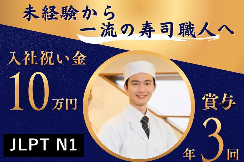 【アピールポイント】 \経験ゼロから板前へ!/ 回転寿司屋で板前見習いを正社員募集 ●未経験OK ●賞与年3回 ●入社祝い金10万円 ●若手~ミドル層活躍中