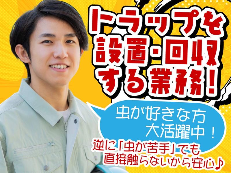 仕事内容 \ 害虫退治の専門家! / \ 虫を見ることなく駆除完了 / \ 未経験歓迎 / 食品工場やスーパーなどに設置された 「害虫トラップ」を 回収・交換・点検するお仕事 害虫の特性を学んで自宅の害虫発生も低減? ==================== \虫が苦手でも大丈夫!/ トラップは中身が見えない構造なので、 虫を直接見ることはありません! もちろん触ることもありません! ==================== \事務所リニューアルオープンで増員募集/ \AIも景気も無関係で業績好調/ 【具体的な仕事内容】 ・害虫駆除のトラップの仕掛け・回収・交換 ・衛生管理者や管理人への設置報告 ・簡単な書類作成など ▶取引先;千葉県エリア周辺 ✅現場により直行直帰もOK! ✅マイカー・自転車通勤OK! └社用車(軽自動車・バン)で現場を回ります └決まった手順・ルートに沿って対応。 …………………………………………………… ▶【アピールポイント♪】  ̄ ̄ ̄ ̄ ̄ ̄ ̄ ̄ ̄ ̄ ̄ ̄ ̄ ̄ ̄ ✅無資格OK!未経験大歓迎! ✅先輩の同行・マニュアルあり ✅年間休日110日・有給連休もOK ✅有給休暇の連休申請もOK! ✅入社祝い金10万円支給! ==================== 直接の虫退治はありません! 虫嫌いのスタッフが活躍中!? ==================== 回収・交換がメインのお仕事なので、 車の運転ができれば早くも50%の仕事が できています! ▶先輩Aの声 「実は自分も虫が苦手なんですけど、トラップは中が見えない構造なので、無理なく働けています。気がつけば、入社してもう15年です」 ▶先輩Bの声 「今まで飲食店で働いていて虫に困ってたところに、害虫業者がきて駆除してくれて、すごく助かったことがあたんです。今度は自分が、その助ける側に回ってみたいと思って、害虫駆除業界に入ったんです」 ▶先輩Cの声 「私は、逆に子どものころから虫が好きで。その中で害虫の特性と対策に興味が湧いて入社しました」 ==================== マニュアル・先輩のサポートで 未経験でも安心! ==================== ✅未経験でも安心してスタート! ▶トラップの設置はマニュアル完備! 入社後は先輩が現場に同行します。 分からないことは、 すぐに相談できる環境で 仕事の流れをしっかりと把握できます! ✅20代~30代の若手中心に活躍中! 今よりも安定した環境で働きたい… 役立つスキルを身に着けたい…等の理由で 異業種から転職した先輩が 今ではチームリーダーとして活躍中! 0からのスタートでも、スキルを増やして 確実にステップアップできる環境です! ==================== 『生活に欠かせない仕事だから、 待遇も安定も強いです。』 ==================== 食品・物流・スーパー・商業施設など、 衛生管理が求められる施設は 景気に関係なく一定の需要があります。 人の暮らしの“清潔と安全”を 守る仕事だからこそ 景気の波やAI化の影響も受けにくく、 長く続けられる仕事です。 ==================== 経済的サポートも充実しています! ==================== 将来の為貯金をそろそろしていきたい… 家族のためにお金が必要…等 金銭的な悩みは人それぞれ…! そんなお悩みにも当社は寄り添います! ■入社祝い金10万円支給! ■昇給年1回 ■賞与年2回 ■決算賞与あり(業績あり)等 経済的なサポートも充実! さらに、資格手当や役職手当など 個人の頑張りが給与に直接反映されるので モチベーション高く働けます!!