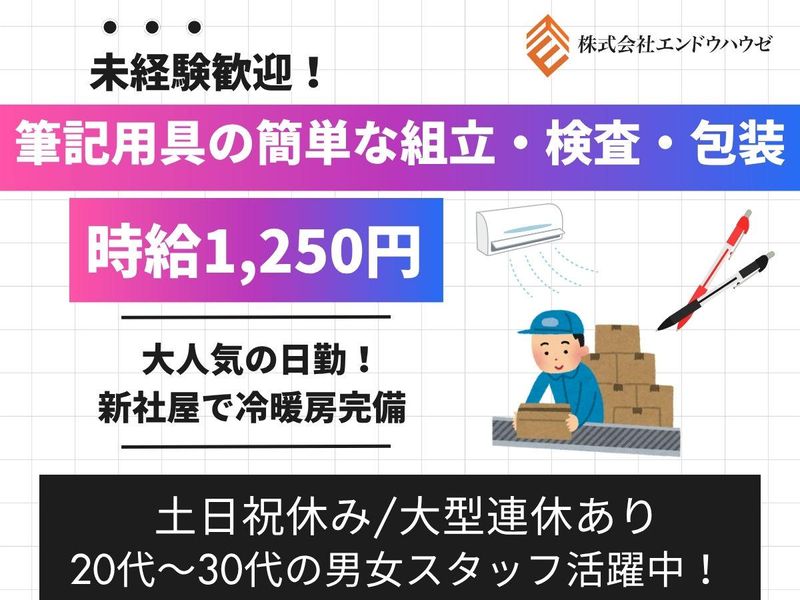筆記用具の簡単包装|土日祝休み|入社祝金10万円|空調完備