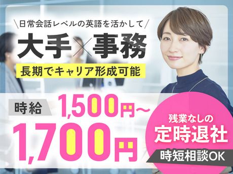 【MAX時給1700円】日常会話レベルの英語×何らかの事務経験があればOK!”大手メーカー”での一般事務!残業なしの定時退社でメリハリ◎!
