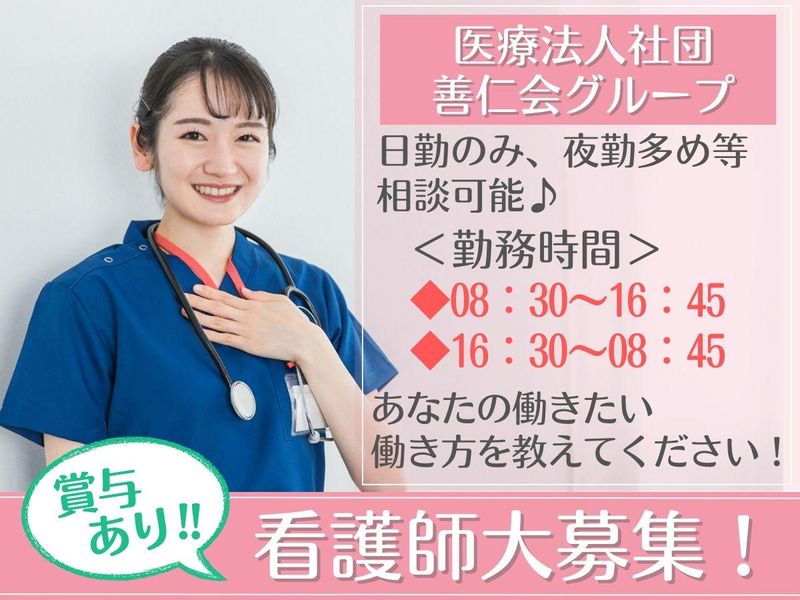 仕事内容 ❃・。病棟看護師のお仕事。・❃ ―――――――――――――――― ▷ おすすめポイント♪♪ ◎JR西八王子駅徒歩1分。通勤ラクラク♪ ◎有休取得率94%(2023年度実績) ◎賞与実績4.79ヶ月/年収500万円以上可 ◎育児手当 年間最大30万円 ◎残業月平均5時間程度 ◎食事補助 ◎保養所(伊豆高原/山中湖/越後湯沢)利用可 ▷ 主な業務内容は.. 透析クリニックの療養病棟で看護業務全般 【具体的には】 ・バイタルサインの測定 ・清潔ケア(清拭・入浴介助など)、排泄介助 ・食事の準備や食事介助、与薬 ・医師の診療補助 ・入退院準備/調整/カンファレンスなど 透析は透析室で行いますので 透析業務はなく、透析経験も必要ありません。 *❃╲クリニックを多数運営するグループ/❃* ❐JR「西八王子駅」北口より徒歩1分の 透析専門のクリニックです。 東京・神奈川で多数クリニックを運営する ”善仁会グループ”で安定して働きませんか // 気になった方はまずお電話を♪ ☎042-662-1020 \\