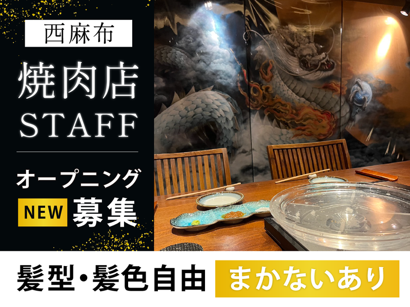 仕事内容 \\ オープンしたばかりの新店舗 // 西麻布の焼肉店で、店舗運営を担う 【オープニングスタッフ】募集。 ✅独立応援!運営スキルが身につきます ✅月給50万円~◎責任を持って働ける! ✅ネイル・ピアスなどオシャレもOK お客様は富裕層やアッパー層の方が中心で、 落ち着いた雰囲気の中で、 上質な時間と食事を提供していきます。 お店の立ち上げという特別なタイミング。 一緒に働きやすい環境を作りましょう✨ *……*……*……*……*……*……* ■ホール ・お席までのご案内 ・オーダー ・料理の提供 ・テーブル片付け ・お会計 など ■キッチン ・調理補助 ・片付け ・洗い物 など 《さらに!》 発注や売上管理、スタッフ管理など、 ホール・キッチンの両面を見ながら 店舗全体をリードしていただきます。 サービス品質の改善なども考えながら、 店長へのキャリアアップを目指します。 *……*……*……*……*……*……* ⏩最初は特別なスキル不要! 上質な接客スキルや料理の基礎から しっかりレクチャーしていきます◎ もちろん、飲食店経験がある方は 即戦力として活躍できますよ♪ 「裁量を持ってスキルを活かしたい」 「将来自分のお店を持つために勉強」 …そんな志望理由も大歓迎です!