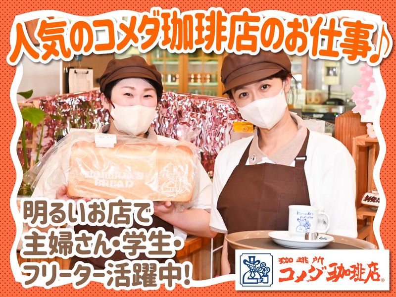 求めている人材 <春から大学生の方も大歓迎!> ・未経験歓迎! ・長期歓迎! ・大学生活躍中! ・Wワーク・扶養内勤務もOK! ・フリーター歓迎! ━━━━━━━━━━━━━━━━━━━ コメダ珈琲では、年齢や経験に関係なく、 スタッフ同士で声をかけ合いながら 働いています。 初めてのアルバイトでも、 わからないことはその場で すぐ聞ける雰囲気です。 忙しいときほど「ありがとう」が飛び交う、 あたたかいチームなのもこのお店の魅力。 同世代の仲間も、経験豊富な先輩も、 みんなで成長を応援してくれます。 人間関係のよさも、 長く続けやすいポイントです。 笑顔でいきいき働けるのも コメダ珈琲ならでは。 シニア世代のスタッフも多数活躍しており、 仕事終わりに「今日もお疲れさま」と 声をかけ合ったり、 ちょっとした世間話を 楽しんだりする時間も 日々の楽しみのひとつです。 落ち着いた店内で、 お客様との会話を楽しみながら、 地域とのつながりを感じられるのも魅力。 誰かと関わりながら過ごす毎日が、 自然と元気につながります。