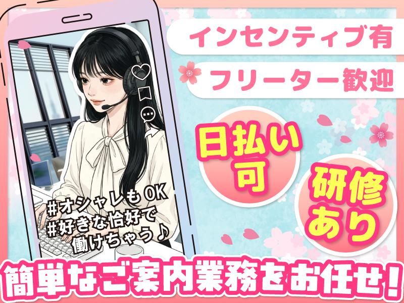 仕事内容 / 大通駅近くにコールセンターを新設! 心機一転✨春の新しいお仕事にオススメ! \ 新生活スタートのこの時期、 バイトだけそのままって、ちょっともったいないかも。 どうせなら>ちゃんと稼げるバイトを始めませんか? \そんな気持ちにピッタリのお仕事がこちら!/ キレイな新オフィスでコールスタッフ募集! オープニングメンバー20名以上の大型採用です! ー 【お仕事について】 お電話で簡単なご案内をするお仕事です。 >>>難しい知識やスキルは不要! トークスクリプト(台本)に沿って案内するだけ! ・・・難しい対応が発生しちゃったら、、、 遠慮せずに社員にパスしてくださいね。 分からないことがあっても、 すぐに先輩スタッフがお教えします! 【しっかり稼げます!】 未経験さんもなんと! 時給1700円スタート! さらに、ご案内したお客様が 興味を持ってくれた件数に応じて ✨インセンティブ支給✨ <<実際に>> ✅インセンだけで10万円以上の人もいます ✅月収40万円以上のスタッフも在籍 (どちらも実話ですよ!!笑) <<研修も充実!>> オシゴトは台本を読みながらの簡単なご案内! ・・・といっても未経験だと知らない人と お話をすること自体を難しく感じてしまうはず。 そんな不安を払拭するために当社では、 「事前研修」に力を入れています! お仕事を始める前に、 会社説明>人事制度説明>知識研修を実施。 ・当社がそもそもどういう会社なのか。 ・評価制度などはどうなっているのか。 ・どんな商材を扱い、どうやって案内をするのか。 などをしっかりと学べるため、 コールセンターデビューの方にもオススメです。 【オフィス環境】 新オフィスなのでとってもキレイ✨ 駅チカだから通勤ラク! 春の雪解け時期でも通いやすいの地味に助かります! 【働き方について】 ・週5でしっかり稼ぐ! ・週1~2でサクッと働く! どっちもOKです! ガッツリ稼ぎたいフリーターさんも、 副業がしたいWワーカーさんも大歓迎です✨ 【職場の雰囲気】 20代~30代が中心となって活躍中! 2~3月にも新人さんが多数入社したため、 同時スタートのメンバーが多めです。 新しい環境だから・・・ >ほぼみんな同じスタートライン! 不安な方は友達同士の応募もOKです。 【キャリアについて】 今回の募集はアルバイトの募集ですが、 正社員登用制度も設けているため、 ゆくゆくは安定して働きたい方もぜひ! 過去の実勢では入社3ヶ月程で、 「アルバイトの責任者」に抜擢され、 入社半年目に「正社員」に登用されたメンバーもいます! そろそろフリーターを卒業したくなった。 キャリアアップに興味がでてきた。 ・・・などといった考えをお持ちになったら、 ぜひご相談してくださいね*
