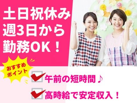 <★保育士資格必須!>土日祝休みで週3日勤務からOK♪家庭との両立も◎