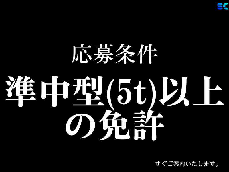 求める人材: 準中型(5t)以上/MTでスタート可能。 ※AT要相談 特別な経験はいりません。 免許があれば、もう条件クリア。