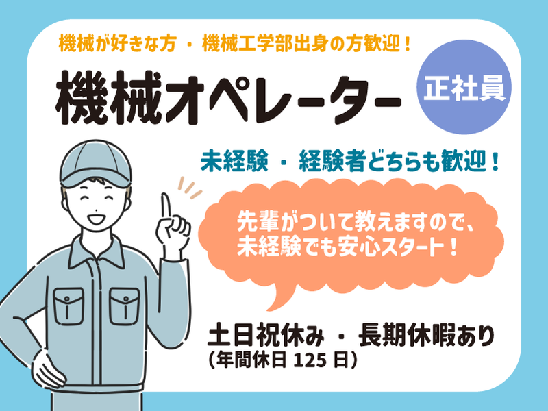 仕事内容 // 「地元で、仕事も子育ても楽しみたい」 そんな皆さん、活躍中! 長く働ける職場づくりを推進中 \\ ▼企業内保育園利用可 0歳~2歳、保育料無料! ※詳細は面談にて ▼おおぞら保育園 https://apex-ibi.co.jp/hoiku \ 注目ポイント / ◆クリーンな健康食品工場 ◆一年中20~23度と快適 ◆経験一切不問 ◆研修期間あり+安心のサポート体制 ◆誰でも機械を操作可能 ◆体を動かすのが好きな方にぴったり ◆初日から「仲間」として大切にお迎え ◆やさしい人柄の先輩ばかり ◆はじめての正社員OK ◆年間休日125日 ◆有給消化率80%超 ◆子育て世代の男性活躍中 ◆子育て支援の制度と風土あり ◆産後パパ育休取得実績多数 ◆子の看護休暇も取りやすい ◆希望しない転勤なし ◆岐阜県ワーク・ライフ・バランス推進企業 【 仕事内容 】 健康食品やサプリメントなどを製造するクリーンな工場で、完成した製品(粉体や顆粒)を「充てん・包装」するセクションの機械オペレーターをお願いします。機械は大切な「相棒」のような存在で、単純作業ではない分、やりがいと面白さのある仕事です。補助スタッフとペアでチームを組み、計画に沿って安定した生産を行うことがミッションです。 ▼入社後は ほとんどの人が未経験からスタート!安心して始められます。まずは製品概要を知る研修を1週間ほど実施。その後、実際に機械を触り、簡単な作業からスタートします。 ▼具体的な業務 ・機械へ原料投入(10~20kgの粉体など)と資材の設置 ・機械の調整 ・機械のスタート/ストップ操作 ・製品の品質チェック ・製品切替時の機械分解・洗浄 ・再組み立て ・点検と記録作成(記録は主に補助スタッフが担当) ▼生産計画は 専門部署が決定し、それに従います。 ▼職場環境 エアコン完備で快適。作業中は集中して取り組めます。 ▼機械トラブル時は? 機械を止めて原因を特定し、対策を実施。これができれば一人前です。一人前になるまで約1年を見込み、丁寧に指導します。 ▼残業は月10時間程度 定時退社も可能。定時は16時30分と早めなので、夕方からの時間を有効活用できます。 ▼休日休暇 土日祝休みの完全週休2日制。年間休日125日、長期連休あり。有給も希望日に取りやすく、消化率は80%以上。半休も利用可能です。 【 一緒に働く仲間 】 現在、当社スタッフ36名が在籍し、うち機械オペレーターは7名。課長(40代男性)は気さくで信頼されるリーダーです。 休憩時間は子育て、ゲーム、推し活などの話題で盛り上がり、堅苦しさのないアットホームな職場。 20代・30代・40代を中心に幅広い世代が活躍しており、入社初日からあなたを大切な仲間として迎えます。 「一人で孤立する」ことは絶対にありません。 【 どんな会社? 】 アペックスは創業77年を迎える、地域密着型のアウトソーシング企業です。 グループ全体では200名以上の社員が在籍し、「人」を第一に考える姿勢で地元の大手優良企業から厚い信頼を得ています。 業績も安定しており、一人ひとりの適性や人柄を大切にした採用を実施。 「長く働ける」待遇・福利厚生・社風づくりを推進しています。 ▼大好評HPリニューアル https://apex-gifu.jp/ 【 転職インタビュー 】 「仲間の支えが自慢の職場です」 Iさん 2017年入社 当時32歳 前職:サービス業の営業職 アペックスでは:機械オペレーター → 課長 以前は大手フィットネスクラブの営業職をしており、やりがいは感じていたものの、定期的な転勤がネックで転職を決意。当時は子どもが生まれたばかりで、妻と「揖斐川町は子育てにいいところ。ここで落ち着きたいね」と意見が一致しました。長く勤められることを重視し、アペックスに応募。健康食品製造の機械オペレーターは未経験で不安でしたが、仲間の支えもあり、今では8年目を迎えました。信頼されるモノづくりにやりがいを感じています。 私自身、家庭との両立を考え安定した働き方を求めて入社した経緯があるため、メンバーの教育体制づくりや子育て中の社員のフォローに力を入れています。気軽に何でも相談してもらえたら嬉しいです。