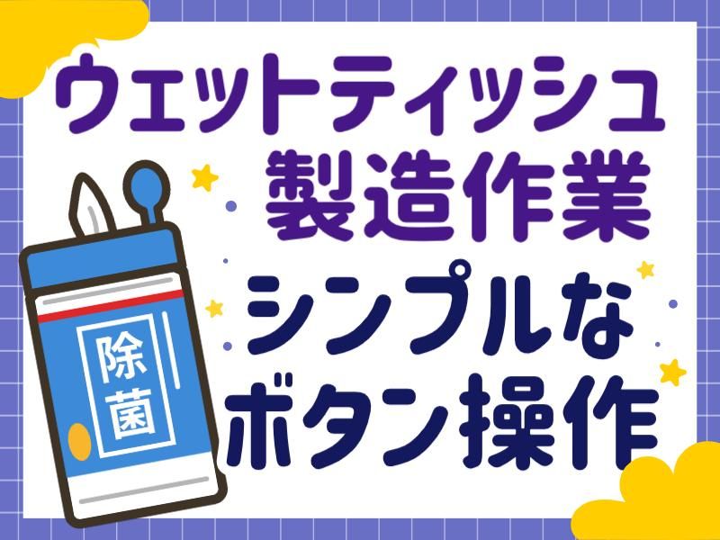 仕事内容 高時給1,500円! ★月収30万円以上可能 ★履歴書不要OK <ボタン操作が中心> 59歳までの男性活躍中の職場! 家庭や日常で使用するウエットティッシュや お掃除シートなどの消耗品の製造工場 【とってもシンプル作業】 ・ロール状の材料を機械にセット ・ボタンを押してスタート ・機械が自動で加工 ・終わったら次の材料をセット ★材料はフォークリフト担当者が運んでくれます ★転がしてセットするだけで持ち上げ作業なし ★一人一台の機械を担当で移動は最小限 ★同じ流れの繰り返しで覚えやすい 製造未経験の方でも、数日で慣れる作業です。 1週間ごとに早番→遅番→夜勤の交替ですが、 土日祝はお休みで予定が立てやすい♪ =========== 【POINT】 ✔ マニュアル通りの作業でOK ✔ 接客なし・一人作業中心 ✔ 工場未経験スタート多数 ✔ 59歳までの男性が活躍中 ===========