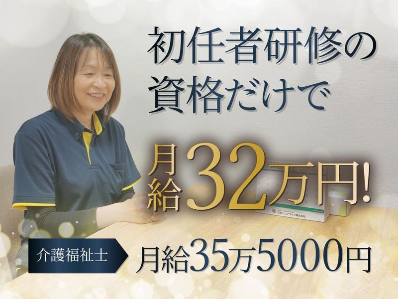 仕事内容 < 訪問介護スタッフを大募集! > (´・ω・){最近、モチベの危機…。 仕事はいっぱいあるのに頑張っても 見返りがない、給与があらがない。 毎日目の前の業務をこなすだけで やりがいも全然感じられない…。 (`・ω・´)<そんな方に 朗 報 !! 12月オープンの老人ホーム、レジデンス なら、初任者でも【月給32万円~】!! 介護福祉士は【月給35万5000円~】! しかも【毎年昇給も賞与もある】!!! さ・ら・に!!!!!入社したら祝い金が 【30万円】もらえちゃいます!!!!! 業務に関しても、 ✅利用者様の生活に寄り添うケアができる ✅1日の予定が決まっているから働きやすい ✅基本一人で行うので人間関係に悩まない と、やりがい大&メリット多数◎ 経験が浅い方も、同業からの転職も \全 員 大 歓 迎 !!!!/ 「とりあえず話聞くだけ…」もOK◎ 応募動機が「とにかくお金」でも 全然問題ないです(笑) *** 利用者様の居宅に伺い、 介護や生活支援をお願いします。 【業務内容】 *食事・入浴・排泄・移動などの介助 *買物同行・代行 *食事の準備・片付け、掃除、洗濯など ~日勤のスケジュール例~ 訪問の日時や訪問先で行うケアの内容は 計画書で決められているため、 訪問介護未経験の方も始めやすいですよ◎ (09:00~)施設に出勤、予定の確認 (09:30~)利用者様のお宅に訪問(1) (10:00~)介助、洗濯・掃除など (11:30~)昼食準備、食事介助など (14:00~)休 憩(1時間) (15:00~)利用者様のお宅に訪問(2) (16:00~)介助、洗濯・掃除など (17:00~)夕食準備、食事介助など (~18:00)翌日の予定を確認して退勤 【当社について】 日本シニアライフ株式会社は、通所介護(デイサービス)、介護施設(有料老人ホーム)、訪問介護、訪問看護、居宅介護支援(ケアマネージャー)など幅広い介護サービスを全国に66拠点展開している会社です。 介護の現場にパチンコや麻雀などを取り入れたデイサービス・ラスベガスなど、様々なコンセプトを持つ施設を運営しています。
