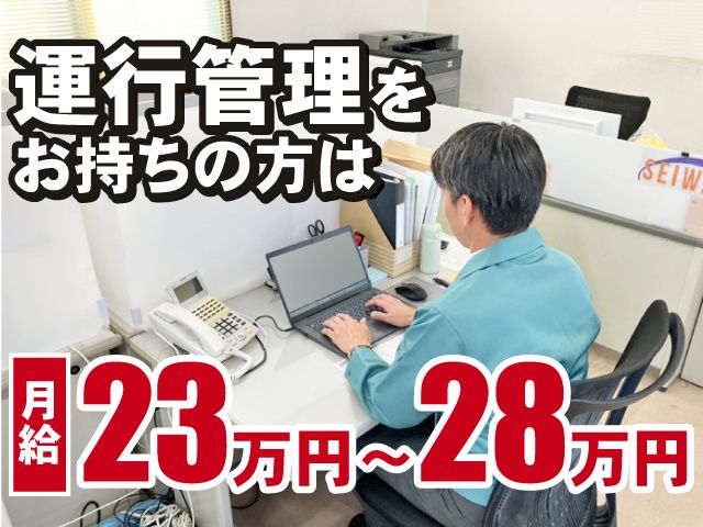 仕事内容 物流会社の輸送センターでの 配車スタッフ(正社員)募集 事務所内で電話やパソコン(専用システム)を 使用したデスクワークです。 移動するトラックが 少ない荷物で走らないように運ぶ荷物を マッチングさせるのが主なお仕事です。 当社では物流コーディネートと呼んでいます。 ◆マッチングのイメージ 取引先からの配送依頼 ↓ 配送先と納品希望日、積荷内容を確認 例)配送先:福島県~東京 ↓ 福島県~東京便を予定している運送会社を探す ↓ 納品時間、積荷の内容を伝える ↓ 条件が合えば交渉成立 ※業務に慣れてきたら、 こちらから取引会社へ電話し 運べる荷物がないかの確認も行います。 応募資格: ・運送会社、物流会社で 配車業務をしたことがある方 (ブランクや経験年数は問いません) ・運送会社、物流会社で ドライバーや事務員として活躍している 又は活躍していた方 (配車の業務を少しでも認識している方) 上記いずれかに該当する方 ※配車スタッフ専用の資格は必要なし ※運行管理者の資格をお持ちの方は、給与優遇 ◎希望により、 運行管理者の資格取得サポート制度あり。 募集理由: この度、増員として正社員を採用予定です。 先輩社員男女3名おりフォロー体制がしっかり! 運行管理者の資格が無い方も応募可能です。 職場環境 郡山営業所(大玉村)での男女比 従業員数20名(ドライバー、内勤含む) 事務所社員6名 内配車スタッフ3名 (男性1名・女性2名、 40代1名/30代1名/20代1名) 面倒見の良い男性社員と、気さくで話しやすい女性社員が あなたを丁寧にサポートします。 採用担当より: 正社員の配車スタッフを募集中です。 現在、20代、30代、40代の社員が活躍中!! 少しでも配車業務の経験をしていた方や、 運送会社でドライバーや事務として 経験がある方でも配車の仕事を少しでも 理解している方であれば応募OK! 『運転に不安が出てきたから、 内勤業務が気になっている』や 『キャリアアップで事務から 配車スタッフになってみたい』など そんな方も歓迎です。 応募お待ちしております。