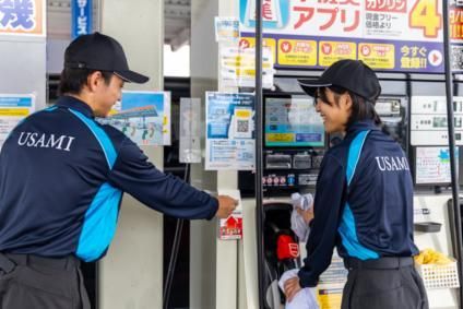 仕事情報 ● 仕事内容 誘導、接客、車やトラックへの給油、オイル・タイヤなど関連商 品の案内、販売、洗車、清掃、軽作業が主なお仕事です。 お客様とお話する機会も多いので常連さんに名前を覚えてもらっ たり、職場の仲間で食事に行ったりなど交友関係も広がります。 マナーや敬語、接客のスキルも自然と身に付きます。 宇佐美グループ 全国600店舗以上(出光マーク含む)のガソリンスタンドを 運営し、あらゆるお客様のニーズに応えられるサービスを 提供しています。 お客様の快適なカーライフをサポートさせていただく為、 各種商品・サービスを取り揃えています。 こんな方にピッタリ 10代高校生~60代シニアまで様々な年代の方が活躍しています! フルタイム勤務を希望される方、フリーターさん、 家事の合間に働きたい主婦(主夫)さん、 夕方から働きたい大学生さんや高校生さん、社会人さんなど。 働きたい勤務日数・時間をご相談ください! 未経験歓迎のサポート体制 ガソリンスタンドでのお仕事経験がない方も大歓迎です。自動車 、バイクの免許も持っていない、知識もない。そんな方も安心し てお仕事ができるように丁寧にサポートしていきます。最初は元 気な挨拶からはじめましょう!接客を通して普段の生活にも役立 つ知識が身に付きますよ。 活かせる資格・経験 ☆危険物乙四・丙種、自動車免許、整備士、検査員、販売士☆ など資格をお持ちの方はもちろんですが、接客経験・車の知識・ 聞き上手・話し上手・笑顔が素敵な方など! ガソリンスタンドで働いている方々は、前職もさまざまです。 あなたの資格や経験が活かせます。