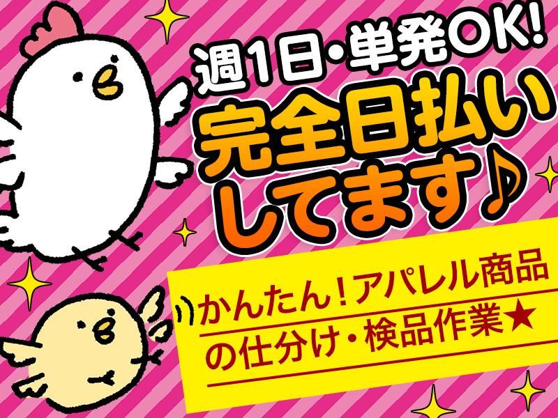 仕事内容 \☆倉庫内での軽作業☆/ 大手アパレル商品の ■仕分け ■シール貼り ■箱詰め です。 シンプルな作業なので未経験 でも大丈夫! わからない事は、先輩STAFFが しっかりとサポートするので 安心です◎ 倉庫でのお仕事が初めての方や ブランクがある方、これから パートお仕事やアルバイトを 始めようかなと思っている パートさんや学生さん大募集!! シフト自由なので、空いた時間に 働けます★ 【ここがPoint】 #日払い #1日から勤務OK! #即日勤務OK! #友達同士OK! #シフト自由! #車、バイク通勤OK! #交通費支給 #無料送迎あり