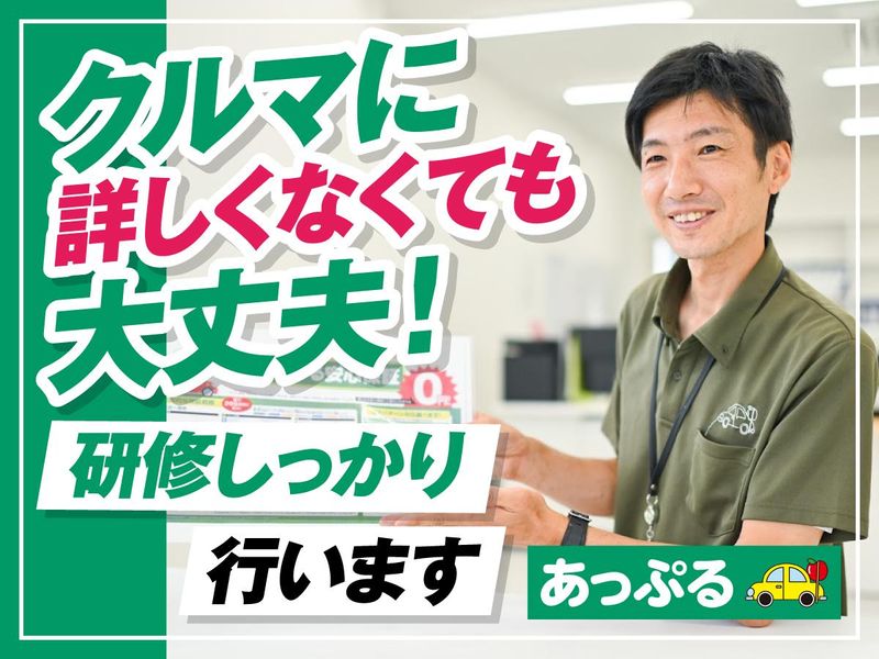 仕事内容 <求人のポイント> ✅未経験でも月給30万円以上 ✅入社1ヶ月で初成約へ!研修サポート充実 ✅販売ノルマなしで気持ちにゆとり ✅新規出店を続ける業界の成長企業 ――――――――――――――――― ✨面接はお気軽にお越しください✨ 堅苦しい雰囲気は一切なし! 楽しくお互いを知る場にしたいと思っているので、 リラックスしてお越しください♪ 人や雰囲気を確かめてから、 入社を決めたいという方も大歓迎。 当社が働くのにふさわしい場所か、 あなたも私たちを見極めてください! <<詳しくは当社ホームページをチェック>> https://www.apple-car.jp/ ――――――――――――――――― ノルマがなくても高収入! 成長を続ける中古車販売店”あっぷる”で、 あなたも働いてみませんか? 以下のような業務をお任せします。 ●中古車のご案内 ┗車の買い替えを検討しているお客様が、 ネットやチラシを見て来店されます。 お客様のご要望の確認や、 クルマの説明などをお願いします。 ●WEBへの情報掲載 ┗中古車検索サイトへ 新しい中古車の情報を登録します。 ●洗車 ┗お客様がいない時間で、 展示車をキレイにします。 ↓ ↓ ↓ ↓ ↓ ↓ 仕事のポイントをご紹介 ↓ ↓ ↓ ↓ ↓ ↓ ①飛び込みなしの反響営業  ̄ ̄ ̄ ̄ ̄ ̄ ̄ ̄ ̄ ̄ ̄ ̄ ̄ お客様の方から来店や問い合わせをいただくので、 営業が「中古車いりませんか?」といった 探客をする必要はありません。 基本は店舗内でのお仕事なので、 外回りで時間を取られないのも◎ ②クルマに詳しくなくても大丈夫  ̄ ̄ ̄ ̄ ̄ ̄ ̄ ̄ ̄ ̄ ̄ ̄ ̄ ̄ ̄ お客様は「この車が欲しい」と 決めて来店されることも多く、 疑問や不安を解決していくことで 自然と成約に繋がります。 先輩のサポートもありますので、 新人さんもスグに活躍できますよ! ③安定して高収入をGET  ̄ ̄ ̄ ̄ ̄ ̄ ̄ ̄ ̄ ̄ ̄ 当社は販売ノルマがなく、 売上次第で収入が落ちたりしません。 営業にありがちな 「今月ヤバいかも…」という プレッシャーとは無縁です! 自分のペースで頑張ることができます。 - ✨入社後のステップUPは… - 未経験でも心配なし! 入社後はOJT形式での研修を行います。 最初は先輩と一緒に商談を担当。 あなたに合わせてアドバイスしていきます。 マンツーマン指導になるので、 分からないことは何でも質問してください。 順調にいけば、入社1ヶ月目で初成約へ! 入社2~3ヶ月目で独り立ちしていき、 自分のスタイルでお客様と向き合えるようになります。 ゆくゆくは営業として活躍し続けるだけでなく、 店長やマネージャーへのステップUPも可能です。 管理職になればイベントの企画や中古車の仕入れなど 幅広い業務に携わることができます。 関西~四国エリアで事業拡大を続ける会社ですので、 キャリアUPのチャンスも十分にあります! - ✨先輩からのメッセージ - 「前職は全く違う業界で販売をしていましたが、 中々給与が上がらず転職を決意。 未経験でも高収入を狙える条件に惹かれて、 あっぷるを転職先に選びました。 車に関しては全くの初心者だったので、 最初はやっていけるか不安でしたが、 実際やってみると知識よりも お客様と向き合う姿勢や対話力が 重要な仕事だと気づきました。 ”あなたから買いたい”と思われるような 信頼関係を築くことができれば、 中古車はしっかりと売れていきます。 お客様とどのように関係性を築くかは、 自分の得意なスタイルでOK。 私は前職で身につけたことも活かしつつ、 お客様の期待に応えるようにしています。 結果として販売営業2年目の私も、 毎月平均して15台は売れるように。 年収は前職以上になりましたし、 満足して働くことができています」 ―2年目営業より