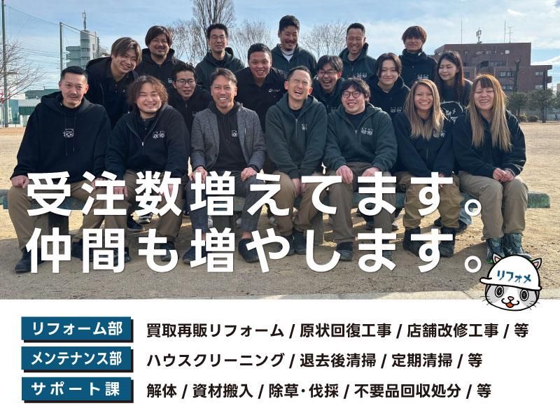 仕事内容 【 未経験OK*経験者は給与優遇! 】 ・週休2日制(月8~10日) ・シフト制なので平日休みたい人もOK ・チーム制なので未経験者も安心 ・男性の育休・産休取得実績あり ・資格取得支援有り!成長も目指せる *************** 【主な仕事内容】 *リフォーム物件の引き渡し清掃 *賃貸物件の退去後清掃 *ハウスクリーニング *エアコン分解洗浄 *オフィス、店舗の定期清掃など 1班2~3人で業務を行うため 質問もしやすく、 作業も覚えやすい環境です。 道具の使い方や作業方法なども イチから丁寧に教えますので未経験の方でも 安心して取り組めます! 弊社リフォーム部が施工した空き家や アパートの仕上げ清掃は、 現場には私たちしかいないので タイミングを気にせずなんでも聞ける環境! しっかり丁寧にレクチャーしますので ご安心ください!
