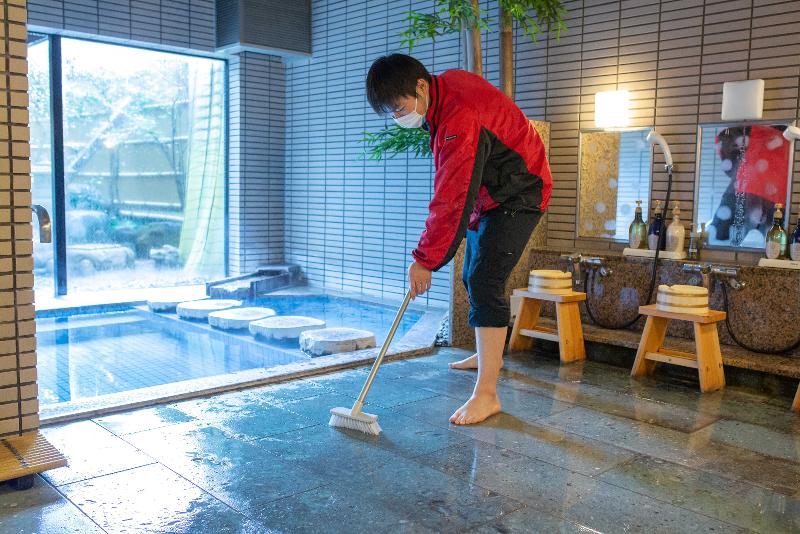 仕事内容: 提携先のホテル・旅館のお掃除、3-5人で作業します。 清掃箇所はユニットバス、洗面台、トイレ、大浴場、ロビーなど。