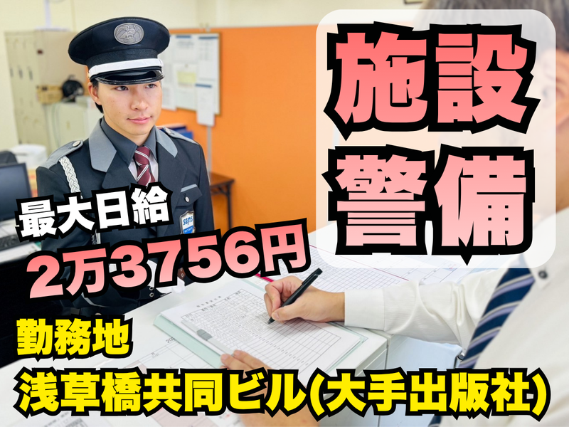 仕事内容 【具体的な内容】 ◇警備室での来訪者や業者の出入り管理(受付) ◇ビル内の巡回(各所に異常が無いかを点検するだけ) ◇開館・閉館作業(鍵の管理など) ◇その他、事案があった際の初期対応 都営浅草線「浅草橋駅」徒歩1分! 総武線「浅草橋駅」東口徒歩3分! 大手出版社の本社ビルでのお仕事です♪ 未経験の方でもきっと楽しく働ける職場です!! 【PRポイント】 ★勤務地は台東区浅草橋の大手出版社の本社ビル ★都営浅草線・浅草橋駅徒歩1分 ★JR総武線・浅草橋駅徒歩3分 ★最大日給2万3756円 ★資格・経験は不要! ★シフト制のため予定が組みやすい ★教えてくれる人がいるので初心者でも安心 ★お休みもきちんと取れます