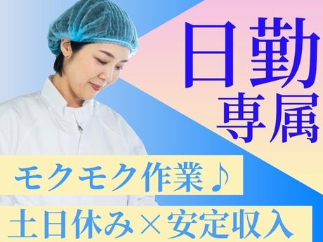 定着率◎人気のモクモク作業!日勤固定/17時半定時/土日休み/残業なし/20代~50代の女性活躍中