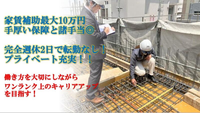 仕事内容 \\✨求人のポイント✨// 【ワンランク上のスキルUP】 実力主義のキャリアアップが実現可能な当社では、頑張りや成果はすぐに昇格・昇給に反映! 最速で入社後半年で課長職に昇格し、年収180万円アップした事例あり。 社員の半数以上が入社1年以内に100万円以上年収アップした実績も。 【働きやすい職場環境】 完全週休2日で出張転勤なし! 家庭との両立もバッチリ◎ 住宅手当最大10万円支給 ⭐【業務内容の裁量が大きい】 土地仕入れから設計・建築スケジュールを自社グループで管理しているため個人の裁量が大きく、厳しい納期に追われる心配もありません! * … * … * … * …* … * …* …* … 【仕事内容】 ■現場確認と安全管理・品質管理 ■工程スケジュール管理 ■協力会社や施工会社との調整や指示 ■図面チェック(作図は外注) ■発注書の内容精査 ■施工・納材協力会社との工程調整や手配指示、発注のとりまとめ ■各種申請 * … * … * … * …* … * …* …* … 【具体的には】 ✦RC造共同住宅新築工事の施工管理をお任せします。 ■建物は4~5階建・8~20世帯規模の投資用マンションです。 ■9割以上がRC造ですが、木造やS造の施工実績もあります。 ■巡回型の施工管理なので長期現場常駐勤務なし。 ■現場は東京23区が中心で、基本的には出張や転勤はありません。 ┗神奈川県・千葉県・埼玉県にも施工実績があります。 ■管理案件は4~8件程度で直行直帰も可能です。 ■中途社員も把握しやすい規格化されたプランニングや仕様です。 ・・・業務補足・・・ 工事が計画通りに進んでいるかを巡回で確認し、現場の安全・進捗・品質管理をお願いします。 建築面積は100㎡程度なので、能力に合わせて一人当たり4~8棟の現場管理をお任せします。 ・・・配属先・・・ 施工管理職のメンバーは、20代~50代の経験者が活躍中! 現在は約20名程ですが、2031年までに100名体制まで増員予定! 建築部門の中心メンバーとして活躍できます!