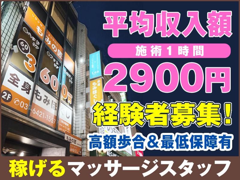仕事内容 \\ ⭐経験者限定 ⭐高待遇募集 // 「Wワークではじめる」「まずは様子見から」 そんな方も大大大歓迎! ╭━━━━━━━━━━━╮ ☆働きやすさ&稼げる理由☆ ╰━━v━━━━━━━━╯ ✅施術1時間:平均2900円!! ✅安心の最低保障制度あり! ✅週1日、1日4時間~シフト柔軟◎ ✅短時間~フルタイムまで働き方自由 ✅自由が丘駅前⇒通勤便利✨集客抜群✨ ✅インボイス自由!初めてでも大丈夫♪ ━■ 仕事内容 ■━━━━━━━━━━━ ◇もみほぐし ◇リラクゼーションマッサージ ◇整体 ◇エステ など お客様に合わせた施術を行っていただきます。 ⭐自由が丘駅スグの繁盛店だから ✅集客率◎ ✅確実にしっかり稼げます! ⭐「経験が浅くて不安…」という方には 有料の研修もご用意! 自信をつけてからお仕事ができる環境です♪ ✨女性スタッフも活躍中! ━━━━━━━━━━━━━━━━━━━ ❐ こんな方におすすめ!  ̄ ̄V ̄ ̄ ̄ ̄ ̄ ̄ ̄ ̄ ̄ 「Wワークで夕方から短時間だけ」 など、あなたの今の生活や希望に合わせて 柔軟な働き方が可能です! しっかり稼ぎたい方は通し勤務もOK! 様々なニーズに幅広くお応えできます◎ ❐ 繁盛店だからこその高額歩合!  ̄ ̄V ̄ ̄ ̄ ̄ ̄ ̄ ̄ ̄ ̄ ̄ ̄ ̄ ̄ 施術1時間の平均はなんと平均2900円! 頑張り次第でガッツリ稼げる環境です! 「手取りでこれくらい欲しい…」そんな 希望に全力でお応えします! まずはあなたの希望の働き方、稼ぎ方を 教えてくださいね! /////////////////////////////////////// ⭐あなたの技術を収入でしっかり評価! 一緒に自由が丘エリアのマッサージを 盛り上げていきましょう! ///////////////////////////////////////