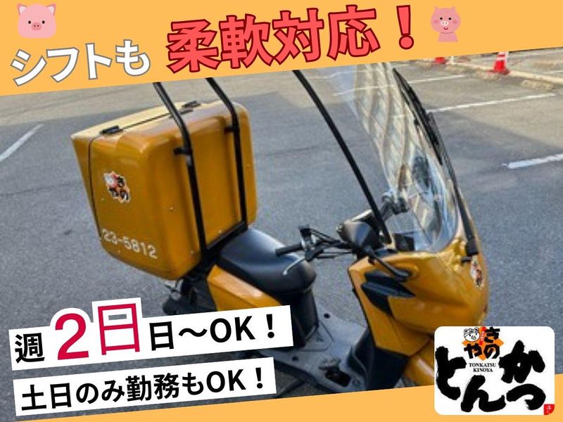仕事内容 ✨デリバリースタッフ募集中✨  ̄ ̄V ̄ ̄ ̄ ̄ ̄ ̄ ̄ ̄ ̄ ̄ ̄ ̄ ⏩土日祝メインで入れる方歓迎! ⏩日祝は時給1150円! ⏩1日2~3時間の短時間OK! ⏩週2~3日で無理なく勤務! ⏩絶品まかない付き! 【仕事内容】 とんかつ店のデリバリースタッフ(配達)募集! ご注文いただいた商品を、佐賀市内のお客様へお届けするお仕事です。 配達の合間には、簡単な盛付けや洗い場など、 カンタンな軽作業をお願いすることもあります。 ●事前決済なので金銭授受はありません! ●配達エリアは佐賀市内のみ! ●片道10分程度の近距離中心! ●件数は平日約3件、土日約5件 ➡無理のないペースです! ✅車またはバイクでの配達です!選択OK! ✅遠方への配達はありませんので安心してください。 ✅研修もしっかり行いますので、未経験の方も大歓迎。 慣れるまでは丁寧にサポートします。 ┏ ────────── ┓ ⭐ココが当店のメリット⭐ ┗ ────────── ┛ ⏩WワークもOK! 1日3時間~、週2~3日~相談可能。 空いた時間を有効活用できます。 ⏩日祝は時給1150円! 休みの日に効率よく稼ぎたい方に最適。 掛け持ちにもピッタリです。 ⏩まかない付き コロッケやとり天などスタッフ特典あり。 持ち帰りもOKです。 ┏ ─────────────── ┓ ⭐とんかつきのや 南本店のご紹介⭐ ┗ ─────────────── ┛ 佐賀市内にある“とんかつ専門店”です。 カウンター席からテーブル席、座敷があり、 幅広い世代の方に来店いただいております。 また当店は、デリバリーも行っています! こちらも佐賀市内の多くの方にご利用いただいております。 「タレがマル」「味がマル」「お肉がマル」 三重マルの美味しさを楽しめます!