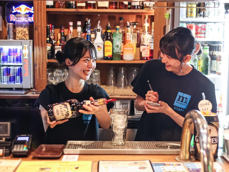 仕事内容 // 「イギリスが好き」 「サッカーやラグビーが好き」 「インターナショナルな雰囲気で楽しく ワイワイ働きたい」という方、大歓迎✨ \\ ⭐・…―――…・⭐ 求人のPOINT ⭐・…―――…・⭐ ⏩飲食未経験やバイトデビューの方も歓迎 ⏩スポーツ観戦しながら働けるレア求人✨ ⏩深夜勤務可能な方は優遇いたします! ⏩髪色自由・ピアスOK◎ ⏩小さいタトゥーならOK! ⭐・・・……――――……・・・⭐ あなたにお任せするお仕事は… ⭐・・・……――――……・・・⭐ ✅カウンターでの接客・会計 ┗当店はキャッシュオンデリバリー (先会計)スタイルです! ✅簡単なフードの調理・盛り付け ┗おつまみ中心なので調理はほぼナシ◎ ✅フード・ドリンクの提供 ┗お客様に笑顔で提供してください♪ クラフトビールやフィッシュ&チップスなど 本格的な英国フード・ドリンクが楽しめる 「モーリス」でのスタッフの募集です! スポーツ観戦や会話を楽しむお客様に、 美味しいフードとドリンクを 笑顔とともにお届けするお仕事です。 ⭐・・・……――――……・・・⭐ バイトデビューにもピッタリ! ⭐・・・……――――……・・・⭐ スタッフ同士は仲が良く、 チームワークも抜群です! サポートし合いながら働いていますので 未経験の方も安心してくださいね。 カウンター越しにお客様との 会話も楽しめるので、 お話が好きな方にもオススメ♪ 「バイトをするのが初めて…」 「働くのが久しぶりで…」と不安なあなたも まずは笑顔で元気な挨拶ができればOK◎ 本格的な英国パブですが、 英語が話せなくても大丈夫です◎ もちろん、英語力を活かして 働きたいという方は大歓迎! 気のいい仲間たちと楽しく働きましょう♪ ⭐・・・……―――――……・・・⭐ モーリス レッドフォックスの魅力 ⭐・・・……―――――……・・・⭐ 本場イギリスの雰囲気が楽しめるパブとして 「行けば誰かと話せる場所」を 目指しています! 夏のビアガーデンでも大人気な 開放的なテラスがあり、 大型モニターでサッカーやラグビーの 国際試合を観戦できる、楽しいお店♪ 席の移動が自由なお店なので、 お客様同士だけでなくスタッフとも 自然に会話が生まれます◎