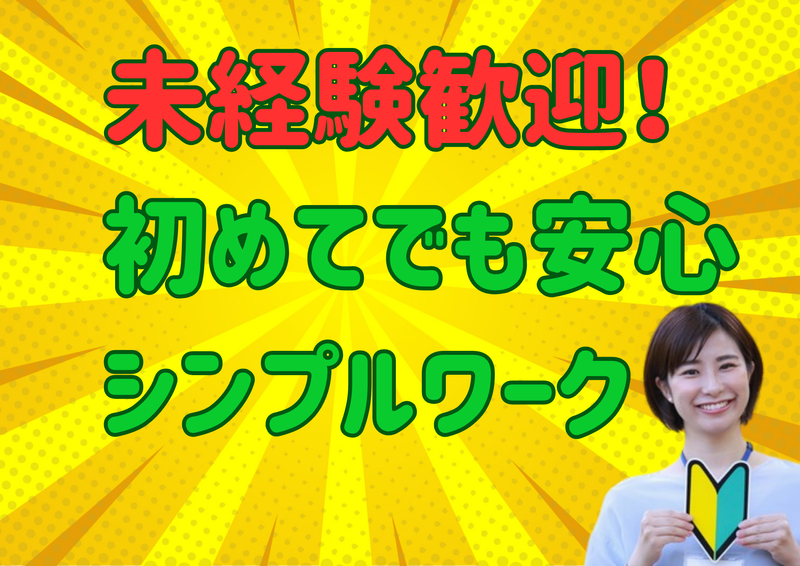 求めている人材 経験・スキル不問! 未経験歓迎! 主婦(夫)・パートさん活躍中 学生・フリーター活躍中 WワークOK ブランクOK 扶養内勤務OK 幅広い年代の方活躍中! 【こんな方にオススメ】 ・コツコツ作業が好きな方 ・Wワークしている方 ・短時間だけ働きたい方 ・久々にお仕事復帰したい方 ・接客なしのお仕事がしたい方 ・難しいくないシンプルワーク希望の方 ・自宅近くで働きたい方