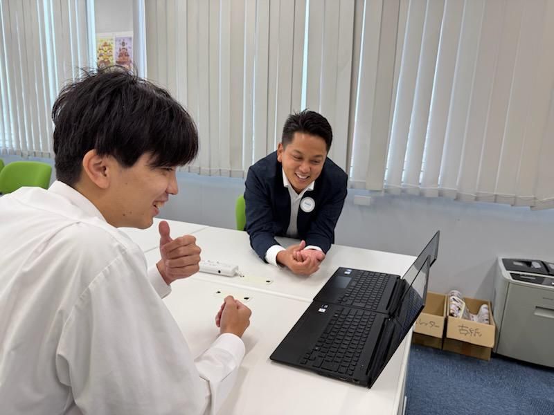 職場環境 一緒に働く営業スタッフをご紹介◎ ひとりは行動力があり、 ぐいぐい引っ張ってくれる兄貴タイプ。 (30代・男性) もうひとりは落ち着いた口調で、 丁寧に話を聞いてくれるタイプ。 (20代・男性) 分からないことはすぐに聞ける、 距離の近い職場です。