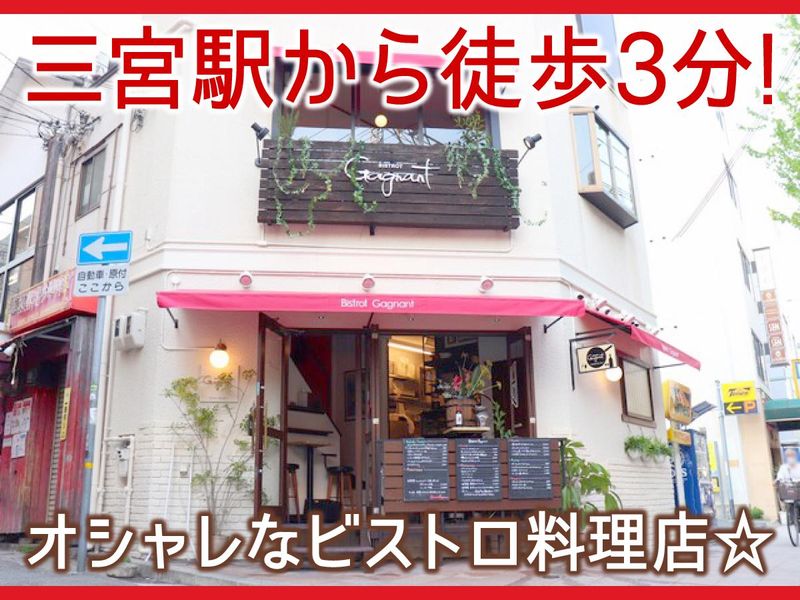 仕事内容 ≪週2~・1日3時間~OK!≫ ≪18時以降の出勤で予定調整ラクラク≫ ≪未経験歓迎!初バイトもOK◎≫ お店を盛り上げてくれるスタッフ大募集! ビストロ料理店のホールのお仕事をお願いします。 具体的には、 ・お客様をお席へご案内 ・注文のお伺い ・料理のご提供 ・机の片づけ 慣れてきたら ・ドリンクの準備 ・洗い物(自動洗浄機でラクラク!) ・レジ をお任せします! 少しずつ慣れていけばOKです! 決まったマニュアルは一切なし! 先輩スタッフのサポートの元、自分らしく働ける職場です。 「初アルバイト」「飲食は初めて」という方もご安心下さいね。 SNSで店舗情報配信など得意な方も歓迎です! あなたの得意もぜひ活かしてください! 【Bistrot Gagnant(ビストロガニオン)ってどんなお店?】 “老若男女、誰もが楽しめる本格ビストロ料理を" をコンセプトとした三宮にある気軽な雰囲気の 一軒家フレンチバルです。 神戸市西区の農家から仕入れる有機野菜、 近海のお魚など素材にもこだわりがたくさん。 肉料理のお惣菜(シャルキュトリー)は、 種類豊富で人気のメニューです! ワインの取り揃えも豊富なので、 興味ある方にとっては面白い環境だと思います!