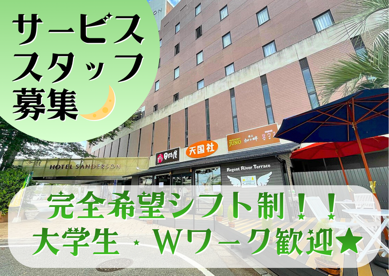 仕事内容 ホテルサンダーソンでの 宴会・パーティーの際の 「バンケット・レストランスタッフ」募集! ―・―・―・―・―・―・―・ ★大学生・専門学生歓迎 ★社会人のWワークもウエルカム ★登録制なので好きな時に働ける♪ ―・―・―・―・―・―・―・ 【具体的には】 ◇料理・ドリンクの提供や会場のセッティング ◇お客様のご案内 などが接客サービスのお仕事です。 ★スポーツ団体さんや企業さんの宴会がメインです ★1ヶ月ごとにスケジュールを組むのでシフトも分かりやすいです! ★立ち振る舞い・マナーも同時に身に付く、やりがいのあるお仕事! *難しい内容はありません! *優しい先輩がスタッフが 親切丁寧におしえるので 未経験の方でも大丈夫!