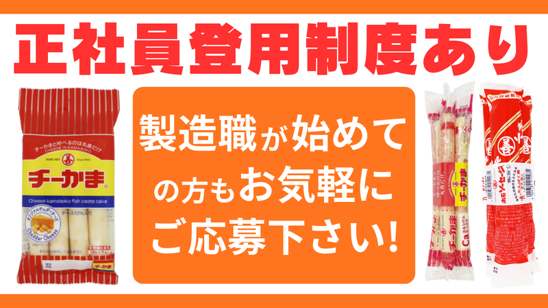 仕事内容 \賞与5ヶ月分支給実績あり!/ 土日休み&正社員登用も◎ ▶安定 ▶働きやすさ ▶将来性 \ぜんぶそろった職場です!/ ✅ここが働きやすさの理由! 〇創業80年以上の安定企業 食品業界で長く安心して働けます! 〇未経験スタートも大歓迎! マニュアル完備&先輩がしっかりフォロー♪ 〇賞与実績5ヶ月分! 頑張りがしっかりカタチになる職場です◎ 〇土日休み プライベートの時間も確保✨ (GW・夏季・年末年始休暇あり) 〇正社員登用制度あり! 長期的にキャリアアップも目指せます♪ 〇事前の工場見学OK! 「まずは雰囲気を見てから…」 という方も大歓迎! <お仕事内容> 「ソーセージ」や「チーかま」など、 人気食品の製造をサポートするお仕事です。 ■具体的には… ・材料の仕込みや製造作業 ・製品の包装、箱詰め、出荷準備 など ✅マニュアルあり&優しい 先輩の丁寧な指導で安心! 工場未経験の方も すぐに慣れて活躍できます✨ 【職場の雰囲気】 落ち着いた雰囲気の中で 20代〜50代まで幅広く活躍中! はじめはカンタンな作業からスタート♪ 焦らず一歩ずつスキルアップできます◎ 「モクモク作業が好き」 「コツコツ取り組むのが得意」 そんなあなたにぴったりの環境です! ✅こんな方にもおすすめ! ・未経験から安定企業で働きたい ・プライベートも大事にしたい ・コツコツ作業が好き まずは職場見学だけでもOK! あなたの「やってみたい」を 全力でサポートします✨ ■■■■■■■■■■■■■■■■■■■■ 応募やお問い合わせは 下記電話番号までお気軽にご連絡ください! ☎TEL:0299-48-0701 ■■■■■■■■■■■■■■■■■■■■