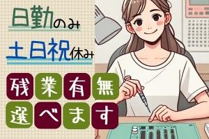 仕事内容 \未経験でも大歓迎!!/ 配電盤の組立作業の中でも、カンタンな工程だけをお任せします! 図面を見ながら軽作業中心の内容です♪ 具体的には・・・ ・図面に沿って釘打ちをする ・釘に電線をひっかける ・電線を結束バンドで束ねる ・電線の先に部品を圧着する ・電線にラベルを付ける などなど ~こんな職場~ ・未経験OK!難しい作業なし♪ ・ネイル・髪色自由!おしゃれも楽しめる◎ ・土日祝休み&大型連休ありで家庭との両立も安心♪ ・15時退勤もOK!お子さまのお迎えにも間に合います◎ ・職場の定着率バツグン!優しい先輩がしっかりフォロー♪