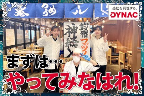 仕事内容 『株式会社ダイナック』は、 サントリーグループの飲食事業を担う成長企業! ―――――――――――――――――――――― ◎レギュラー勤務で安定的に稼ぎたい! ◎経験を積める環境で働きたい! などの意欲があれば、どんな方でも大歓迎です◎ ―――――――――――――――――――――― ・キッチン補助(盛り付けや準備など) ・開店・閉店作業のサポート ・在庫管理や発注業務の補助 など調理業務を中心にお任せ* また、アルバイトの育成・教育や 店舗の運営補助をお願いします。 技術を高め、さらなる成長を目指す方には、 社員登用といったキャリアアップの道もご用意しています。 18歳未経験で入社→23歳で店長に昇格したスタッフも! 【お店のご紹介!】 ―――――――――――――――――――――― 「磯香るポテトサラダ」を注文されたお客様に 「ストップ」と言われるまで「よいしょ~!」と 山わさびをふりかけます♪掛け声が飛び交う 和気あいあいとした海の家のような雰囲気です。 ドドーンと大きな水槽には「オジサン!?」 「グレ!?」など珍しく希少な魚がたくさん! 数量限定で、捌きたての活魚を提供しております。 【 多彩なブランドを展開!】 ―――――――――――――――――――――― 全国で独自ブランドを展開しているのが 私たちダイナックの大きな強み! 東京・大阪を中心に、 レストラン・居酒屋・カフェ・バル 鉄板焼き・和食・イタリアンなど 客単価5000円~2万円と質の高い 食体験を求めるお客様をターゲットに ブランド開発を進めています。 業態別研修や他業態に挑戦もOK! 色んな業態を経験できるのも、 当社で働く魅力の1つです。 《運営ブランド》 ・『焼鳥ハレツバメ』 ・『釣宿酒場マヅメ』 ・『ダイナミックキッチン&バー 響』 ・『ダイナミックキッチン&バー 燦-SUN-』 ・『THE R.C.』ブランド ・『パパミラノ』 ・『虎連坊』 ・『ワイン倶楽部』 ・『北国とミルク』 ・『海鮮食堂 魚盛』 ・『イタリア食堂 ポルチェリーノ』 ・『good spoon』ブランド ・『東京コトブキ』 ・『ACCESO』 ・『ハイボールバー 1923』 ・『もんじゃのえびせん』 ・『MASTER'S DREAM HOUSE』 ・『THE AGING HOUSE 1795』 など 「やってみなはれ!」という社風ですので 経験を活かして道を極めたい方も、 新しい業態にチャレンジしたい方も全力で応援します。 ※月150時間以上勤務できる方の募集になります。 月130~150時間勤務や通常のアルバイト採用も有。