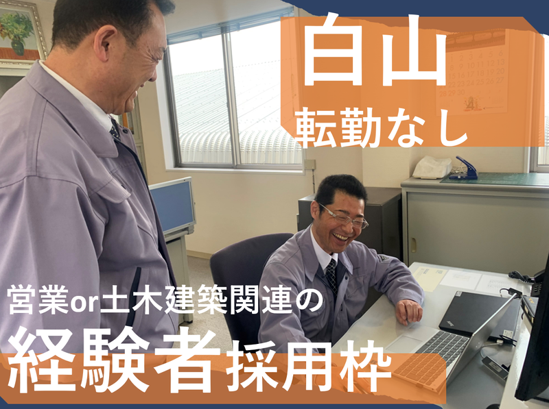 仕事内容 【建設機械レンタルの営業】 ✨営業経験or土木建築業界の経験者の 採用枠です! ✨東証プライム上場株式会社カナモトの グループ会社 ✅転居を伴う転勤なし! ✅年間休日114日 ✅営業職は男性5名活躍中 ✅個人ノルマはありません! 当社は新幹線や高速道路などをつくる、 公共インフラ工事の現場に「建設機械」の レンタルを行っています! 【具体的には】  ̄ ̄ ̄ ̄ ̄ ̄ ̄ ̄ ・南加賀地域を中心とした北陸三県エリア ・建設会社や建設現場へ社有車で訪問 ・担当エリアを1日6~7件の取引先ほど ・案件のヒアリング、見積書作成、提案~ 受注、工事期間中の現場サポートなど 【建設機械のレンタルって?】  ̄ ̄ ̄ ̄ ̄ ̄ ̄ ̄ ̄ ̄ ̄ ̄ ̄ ̄ ̄ ✨主にバックホー、発電機、4トンダンプを 扱っています。 土木業界(地元の土木建設会社、設備会社) のお客様などに、工事に使う建設機械を レンタルしています。 例えば、下水道工事、河川工事や災害時の 復旧工事に当社の建設機械が活躍しています! ✨お取引先へのルート営業がメイン! 定期訪問を通じて信頼関係を構築! 訪問時は日々のたわいもない会話から 始まり、ご相談をいただいた際には 丁寧に打ち合わせを行います。 安定的なご依頼がありますので、 飛び込みやテレアポはありません。 (営業所ごとの目標はありますが、 いわゆる個人ノルマなし) 受注後は事務さんや整備士、運搬業者に 共有しながらチームで進めていきます! 一人で全てを抱える心配はありません。 ✅【勤務地について】  ̄ ̄ ̄ ̄ ̄ ̄ ̄ ̄ ̄ ̄ *小松市・加賀市に転勤の可能性あり (※転居を伴わない) *小松市・加賀市の事業所での応募も可能です◎ ✅【面接1~2回】  ̄ ̄ ̄ ̄ ̄ ̄ ̄ ̄ ✨面接の場は、気負いせずにお越しください♪ あなたらしさを知る機会であり、 当社のことを知っていただく場です! ★後半に社員インタビューあり!