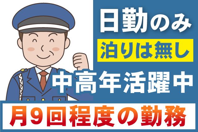 仕事内容 日勤の施設警備員パート・アルバイトスタッフ募集! 月9日程度の勤務で無理なく働けます。 家計の足しや、定年後のお仕事をお探しの 中高年・シニア世代の方にもおすすめ! 65歳以上の方も活躍中。 警備のお仕事が未経験でもOK。 勤務地までは直行・直帰可!通勤も楽々! 今なら入社祝い金を支給します。 [おすすめポイント] ・日勤のみ/夜勤なし(泊りもありません) ・月9回程度の勤務 ・未経験OK ・入社祝い金あり ・パート・アルバイト ・警備員が未経験の方もOK ・WワークOK ・中高年・シニア世代活躍中 ・直行・直帰OK ・当社温浴施設「空の湯」社員優待有 ・施設警備検定1級、2級所持者歓迎 [お仕事内容/施設警備/パート・アルバイト] 芝山町内の物流センターで立哨警備をお願いします。 例えば... ・不審者、不審車両のチェック ・来訪車両及び来訪者受付(出入管理) 長時間立ちっぱなしなんて事もありませんので ご安心ください。 様々な勤務時間がありますので、 ご希望の時間や日数などもご相談ください。 〇こんな経験活かせます 施設警備・交通誘導・常駐警備・駐車場管理・ 監視・巡回・受付・守衛・深夜アルバイト・夜間警備など [警備員未経験の方も大歓迎] お仕事はイチから丁寧にお教えするので 安心してください! 基本的に身分証の確認などの簡単なお仕事です ので、警備員が初めての方にもぴったりです。 今働いてくださっている先輩スタッフも、 未経験からのスタートの方ばかり。 どんな方でも、しっかりサポートいたします。 もちろん資格をお持ちの 経験者、ブランクがある方も大歓迎! [シニア世代の方が在籍しています] 長く続けられるのが警備のお仕事の魅力! 定年後から未経験スタートの方も、 活躍できるお仕事です。 [福利厚生充実) 勝浦のリゾートマンションの無料宿泊券が もらえたり、当社温浴施設「空の湯」が 社員優待価格で利用できたり…と 安定企業ならではの福利厚生がたくさん。 しかも、お誕生日にはバースデイプレゼントもありますよ! 少しでも気になった方はお気軽にお問合せください。 お電話でのご応募も可能です。 電話 0479-78-8705 一緒に働ける日を楽しみにしています! [会社ホームページ] http://www.3am.co.jp/