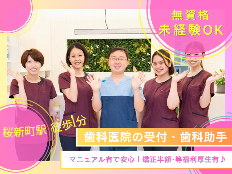 求めている人材 ■資格不要 ■大学生歓迎!! ✨新着求人✨ 歯科助手・受付のお仕事を \ 始めるチャンス! / クリニック受付スタッフや、 美容受付スタッフの経験が ある方はスキルを活かせます! 美容クリニック、 他の歯科クリニックなどからの 転職者、大歓迎! 医療事務スタッフ、 調剤薬局事務スタッフ、 病院事務スタッフとして 活躍していた方も在籍しています。 正社員・アルバイト・パート・ 主婦パートから転職した方も多数! 中高年も活躍中!  ̄ ̄ ̄ ̄ ̄ ̄ ̄ ̄ ̄ ̄ ̄ ̄ ̄ ̄ ̄ <下記当てはまる方にも!!> ✅一般事務や受付医療事務、 調剤薬局事務など事務の経験を 活かして働きたい方 ✅受付事務、美容皮膚科受付 など受付スタッフの経験を お持ちの方 ✅未経験スタートから 高収入を目指している方 ✅歯科助手としての経験を 積みたい学生ok