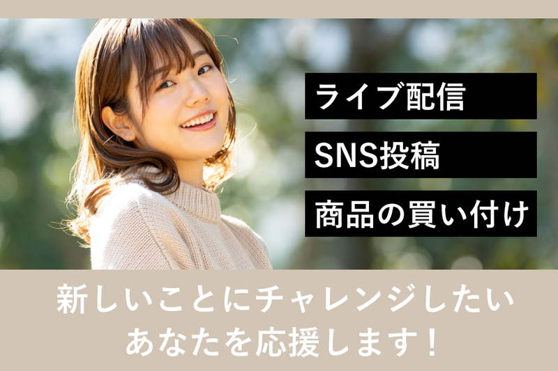 求めている人材 <必須要件> 社会人経験3年以上(目安) 個人や部門の業績指標に対して自ら主体的に取り組み成果を出したご経験 <歓迎条件> 接客・販売経験(アパレル・雑貨・保険などジャンル不問) SNS運用やライブ配信に興味がある方 提案営業経験がある方 ファッション関連商品の仕入れ/買い付けに興味がある方 自分で企画・発信する仕事がしたい方 ライブコマース経験者(販売、ライブ配信アプリ等) <こんな方が活躍中!> 素直で前向きな方 成果を出していくことにやりがいを感じられる方 失敗にめげずにチャレンジし続けられる方 好奇心が旺盛な方 目標達成意欲が高い方