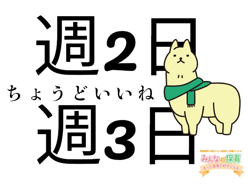 アピールポイント: 》》この求人が選ばれる理由 ◎ 週2~3日OK ◎ 9:00~17:00固定(残業なし) ◎ 曜日固定相談OK ◎ 扶養内調整可 ◎ 交通費支給あり ◎ 書類なし ◎ ピアノなし ◎ 急なお休み相談OK 「ブランクがある」 「体力的にフルは不安」 そんな方にちょうどいい働き方です。 \大好評*事前職場見学もOK/ 日程調整のご連絡から当日の同行まで”みんほく”サポーターにお任せください! 勤務初日の同行出勤もOK! ”ひとりじゃ不安”そんな気持ちにしっかりと寄り添います♪ 最短1か月~のお試し勤務もご相談可なので、無理なくスタートできます。 ==『みんなの保育』が選ばれる理由== \あんしんして働いてほしいから/ ◎担任・ピアノ業務なし! 書類や行事準備の負担もなく、子どもたちとじっくり向き合える環境です。 ◎時間固定の安定シフト! 朝はゆっくりめのスタートや、夕方までの勤務も相談可能♪ 毎日の予定が立てやすく、家庭との両立にもぴったりです。 ◎土日祝休み・年間休日130日以上! プライベートの時間をしっかり確保できます。 「保育の仕事は好きだけど、自分の時間も大切にしたい」という方に選ばれています。 ◎急なお休みにも柔軟対応! お子さまの体調不良や学校行事など、予期せぬお休みにも理解のある環境です。 子育てと両立したいスタッフも多数活躍中♪