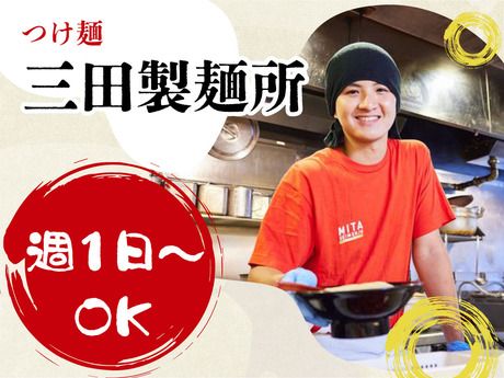 仕事内容 【仕事内容】 つけ麺専門店 三田製麺所でのキッチンスタッフ。 簡単な盛付、調理、洗い物などのお仕事をおまかせします。 飲食未経験やバイトデビューの方も大歓迎! 慣れてきたら、麺場・焼き場の業務をお願いすることもあります。 できることから少しずつ始めていけるので、 調理経験がない方も、歓迎です。 メニュー数が多くないところも、はじめやすいポイント◎ 優しい先輩たちが多いのも三田製麺の自慢! 分からないことがあったら、何でも聞いてくださいね! 研修&マニュアルもあるので、フォローもばっちりです。 【ブランドについて】 三田製麺所は、つけ麺専門店です。 「こだわりの一杯」を提供し、お客様に感動と幸福を提供しています。 提供するのは、こだわって作ったオリジナル濃厚豚骨魚介つけ麺。 スタンダードなものはもちろん、 灼熱つけ麺、鯛だしつけ麺 濃厚海老つけ麺…など 季節に合わせたメニューや、から揚げも人気! 提供する側も楽しめるお店です。 【嬉しい福利厚生1】 ■日払いOK!(規定あり)毎日が給料日!携帯申請のみで翌日には、お給料をゲット! ■感謝マイレージ制度あり:貯まったポイントは優待券や電子ポイントに交換◎ ポイント獲得例>勤務日数、他店舗へのヘルプ、繁忙期シフトインなど、 活躍していただくための仕組みがたくさんあります♪ 【嬉しい福利厚生2】 ■社員登用制度あり …毎年10名前後の方が社員になっています。 正社員を希望の方もご相談ください。 その他にも ■まかない補助 ■交通費支給 ■制服無料貸与 ■昇給あり ■髪色・髪型自由 ■雇用保険完備 ■産休・育休取得実績あり ■昇給あり ・昇給額 :平均10円~140円(1回あたり) ?回数 :年3回(4ヶ月に1回) ?反映時期:決定月の翌月分給与から反映 ?評価方法:当社指定のスキルマップの習得具合を評価 ・・・などメリット多数♪ 【エムピーキッチンホールディングスとは】 『すべての人に、満腹と幸福を』を企業理念に創業から走り続けてきました。 当社は、三田製麺所、渋谷餃子、日本橋とんかつ一(HAJIME)、八宝亭など、 幅広いジャンルで多数ブランドを展開。 国内のみならず、海外にも店舗進出中。 株式上場も視野に入れているフードビジネス企業です。